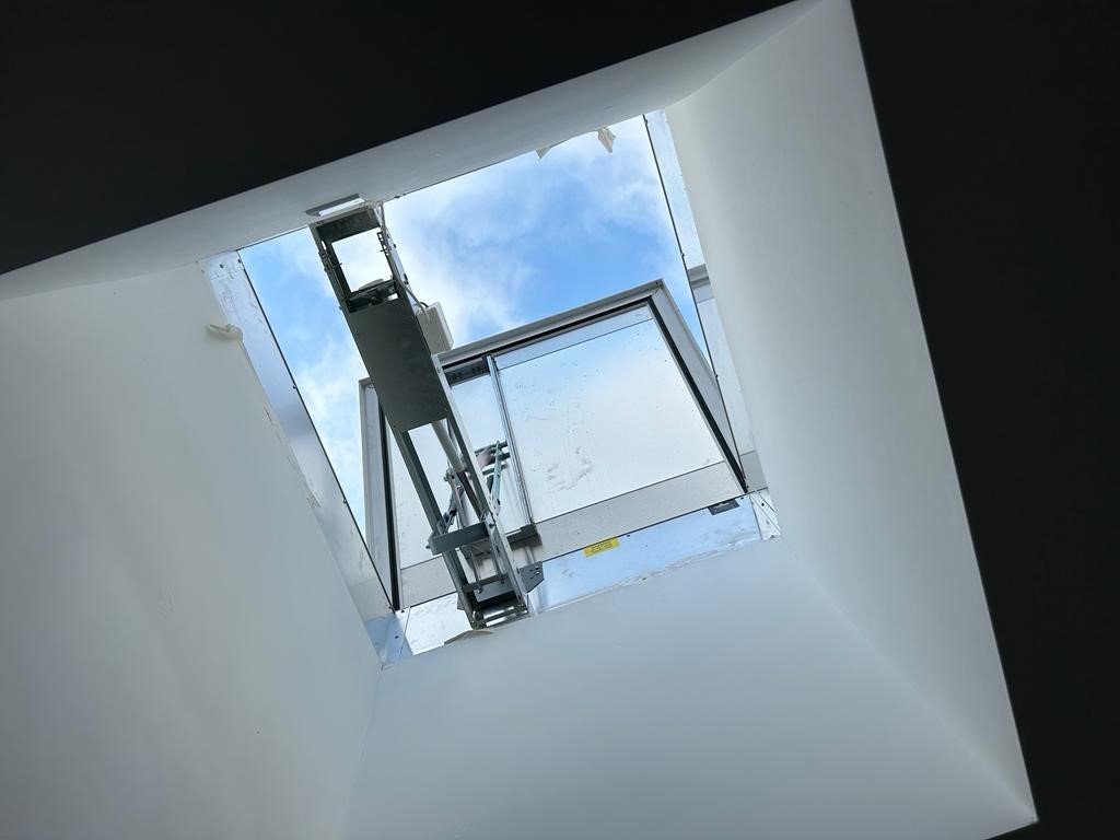 This project consisted of an AOV system to communal staircase utilising a steel bilco roof hatch controlled by an addressable fire alarm system, installed by Midland Signal. We also installed the Fermax door entry system and automatic gates.